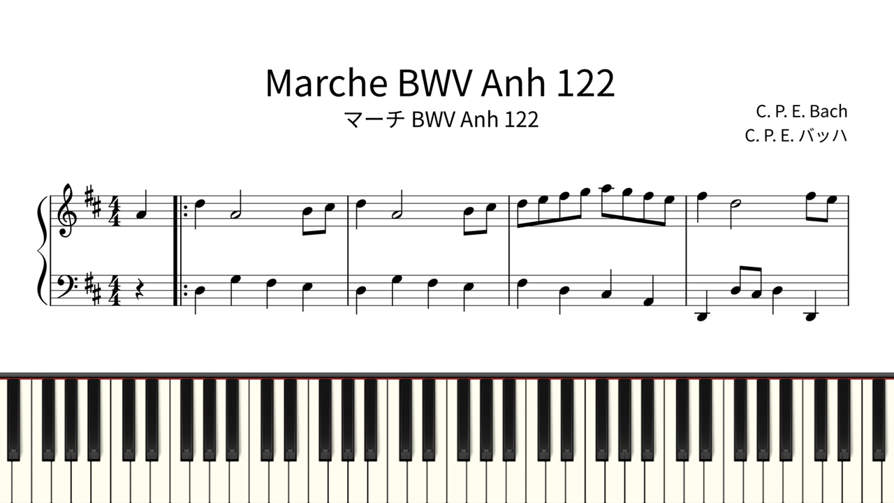 Marche BWV Anh 122 – Carl Philipp Emanuel Bach / C. P. E. Bach | Easy Piano Sheet Music & Tutorial X Facebook Hatena Bookmark LINE Copy 2025.12.29 【Easy Piano Sheet Music】 Marche BWV Anh 122Carl Philipp Emanuel Bach 🎼 Sheet Music(Piascore) Without Note Names With ABC Note Names ▶️ YouTube